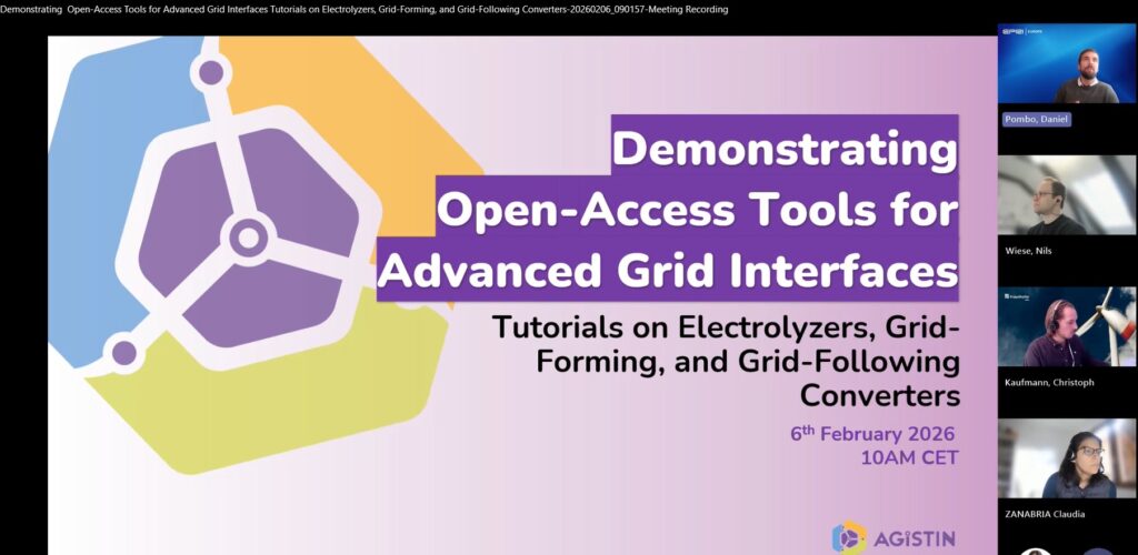 This AGISTIN project latest webinar Demonstrating Open-Access Tools for Advanced Grid Interfaces: Tutorials on Electrolyzers, Grid-Forming and Grid-Following Inverters (6th February 2026) brought together experts from EPRI Europe, Fraunhofer IWES, RTE, and the University of Kassel to showcase practical, open‑source modelling tools and testing methodologies designed to support the next generation of grid‑integrated storage and hybrid plants. Over the two-hour session, speakers demonstrated how electrolyzers, supercapacitors, and grid-forming converters can interact to provide stability services even under weak-grid conditions.